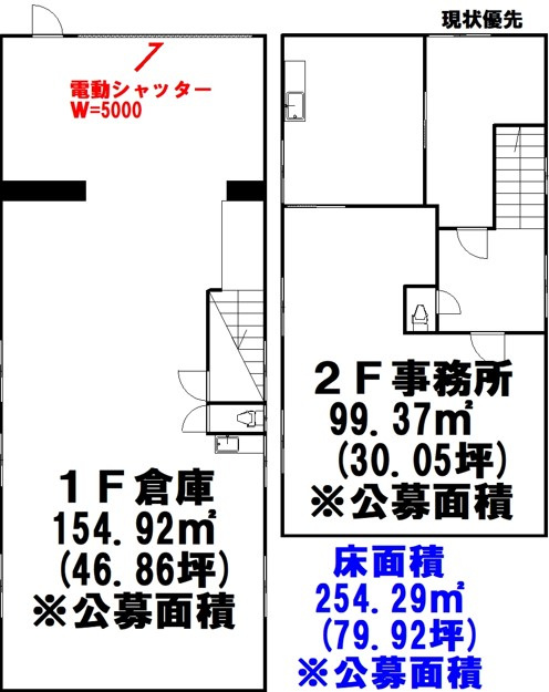 準工業地域、現状有姿渡し、電動シャッター有、駐車場近隣に空き5台有(月額8,000円/台)、家賃保証加入要、借家人賠償責任付火災保険加入要