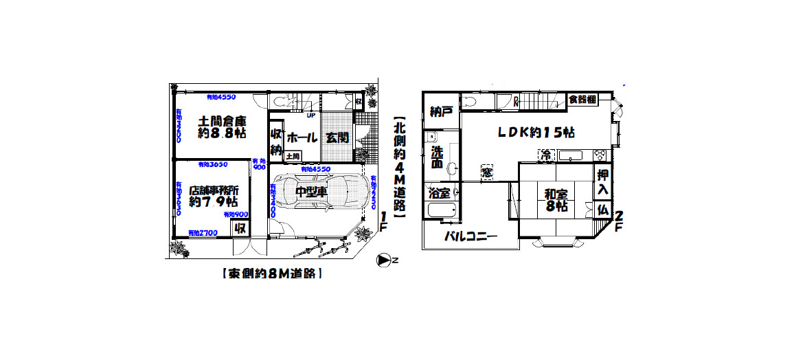 | 特色 | 電気有、上水道有、下水道、都市ガス有、給湯有、電話・テレビ・ネットは借主負担、食洗器・浴室乾燥機・照明器具は残置物、早期解約違約金特約有り、ペット相談可、住宅部分の内装+外装工事渡し、増築未登記部分あり、ハウスクリーニング費用6.6万円、家賃保証加入要、借家人賠償責任付火災保険加入要 |