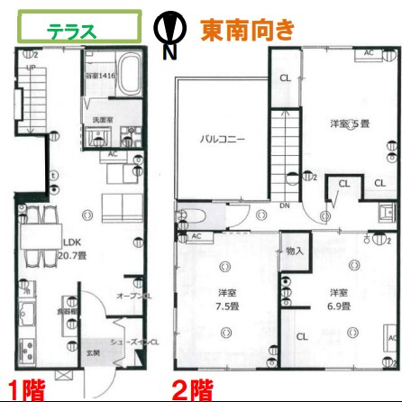 | 特色 | 現状渡し、3LDK、1階:33.5㎡、2階:53.0㎡、ハウスクリーニング代50,000円、鍵交換代16,500円、自治会費有、家賃保証加入要、借家人賠償責任付火災保険加入要 |